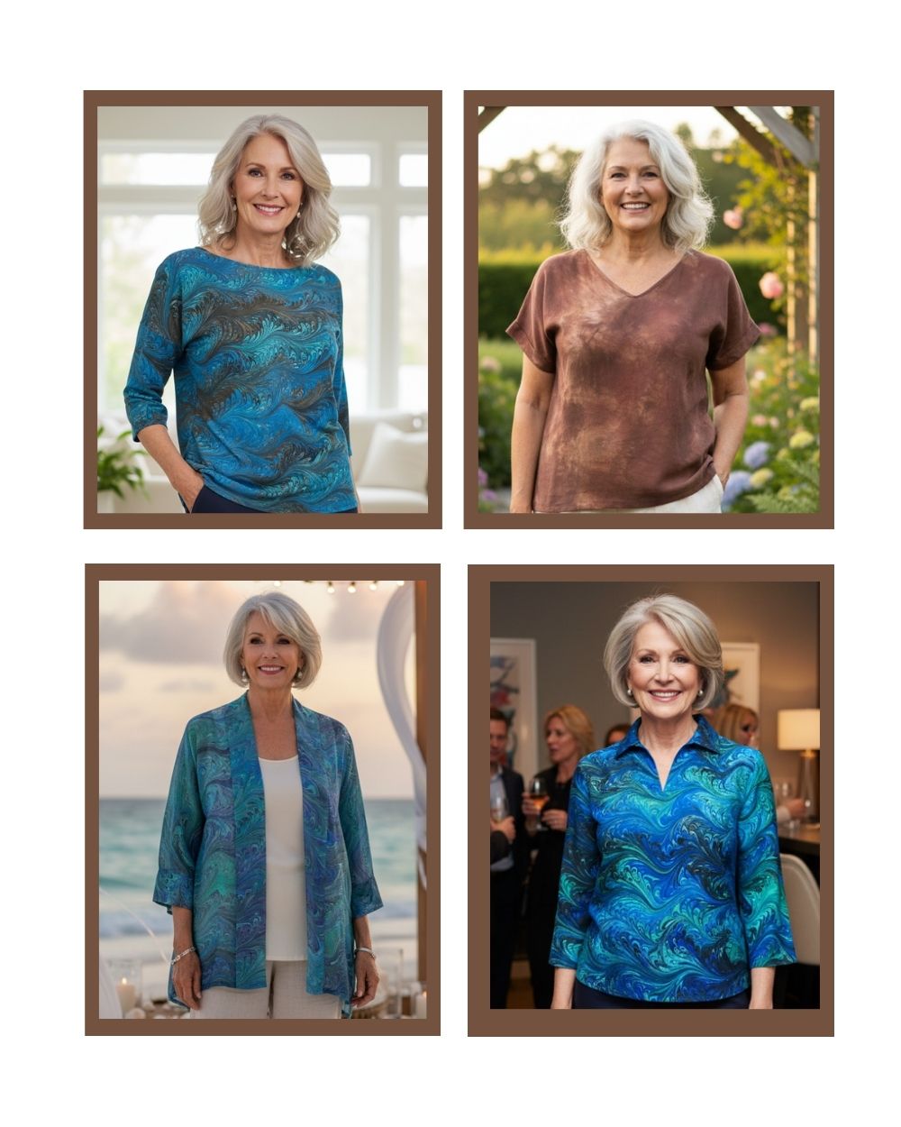 For 25+ years, I have marbled and dyed one of a kind fabrics - I have always loved fabric and being able to create my own images with dyes and paints is my passion! I cut and sew these gorgeous fabrics into fun and colorful clothing for women who LOVE DIFFERENT!!
