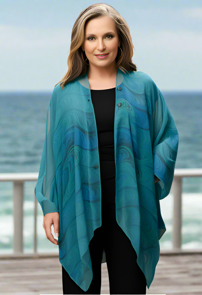 Flowing Wrap Jacket One Size in Summer Turquoise